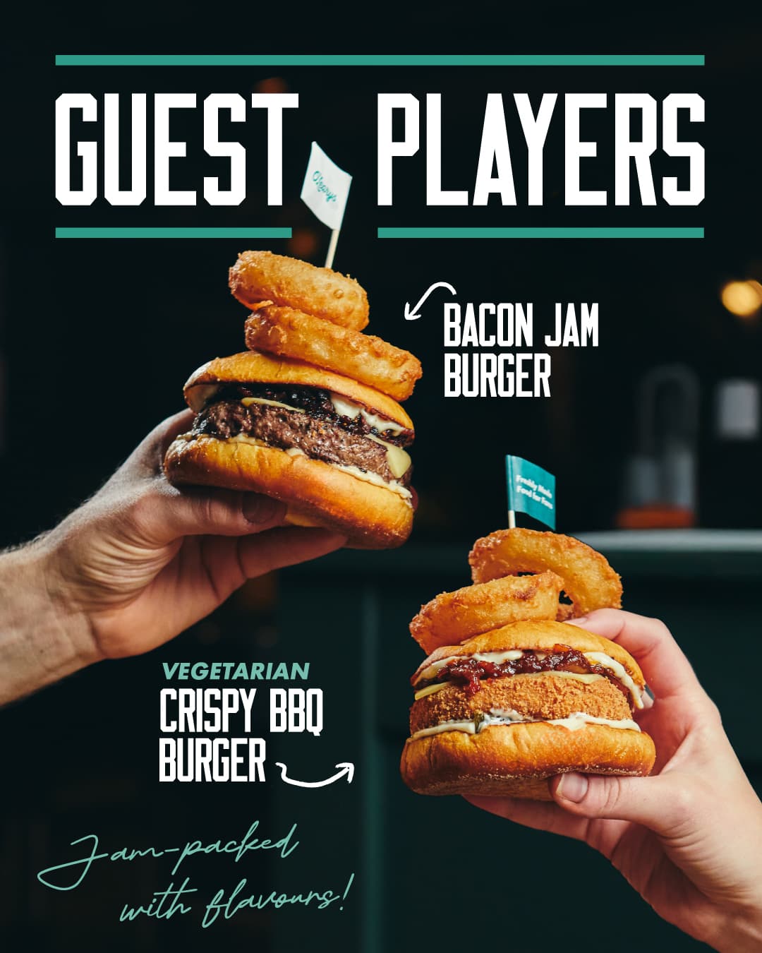 Redo för en smakexplosion? Då har du kommit rätt! Låt oss presentera Bacon Jam Burger och den vegetariska Crispy BBQ Burger som gör ett smakrikt gästspel på menyn under hösten! Bacon Jam Burger En saftig burgare med vår hemmagjorda bacon jam, krämig aioli och pepperjack ost. Toppas med två frasiga lökringar och serveras med krispiga pommes frites. Crispy BBQ Burger Crispy Burger Ärta med BBQ & onion marmalade, aioli och pepperjack ost. Även denna toppas med två frasiga lökringar och serveras med krispiga pommes frites. Vilken du än väljer väntar en burgarupplevelse som får smaklökarna att dansa – välkomna in och testa redan idag!