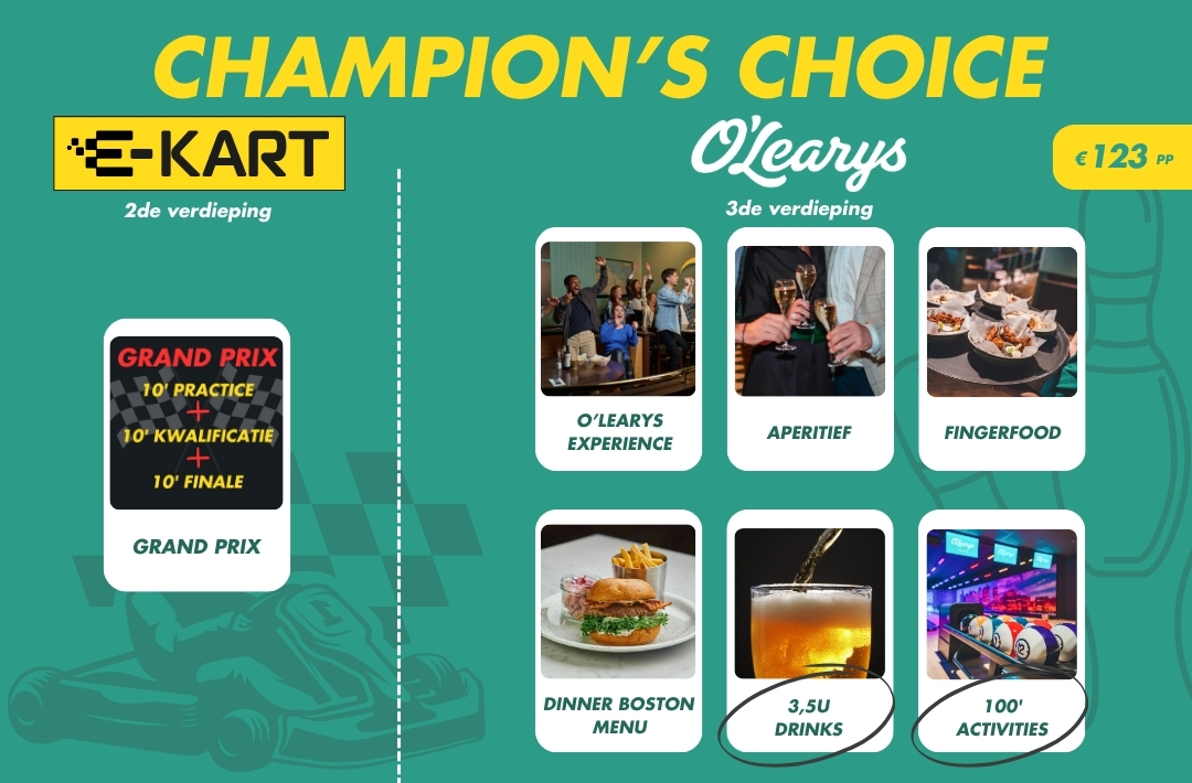 Looking for a team-building event in Ghent that combines action and fun? Choose an unforgettable experience with our team-building packages at O'Learys Ghent, including thrilling karting at our downstairs neighbor, E-Kart Gent.