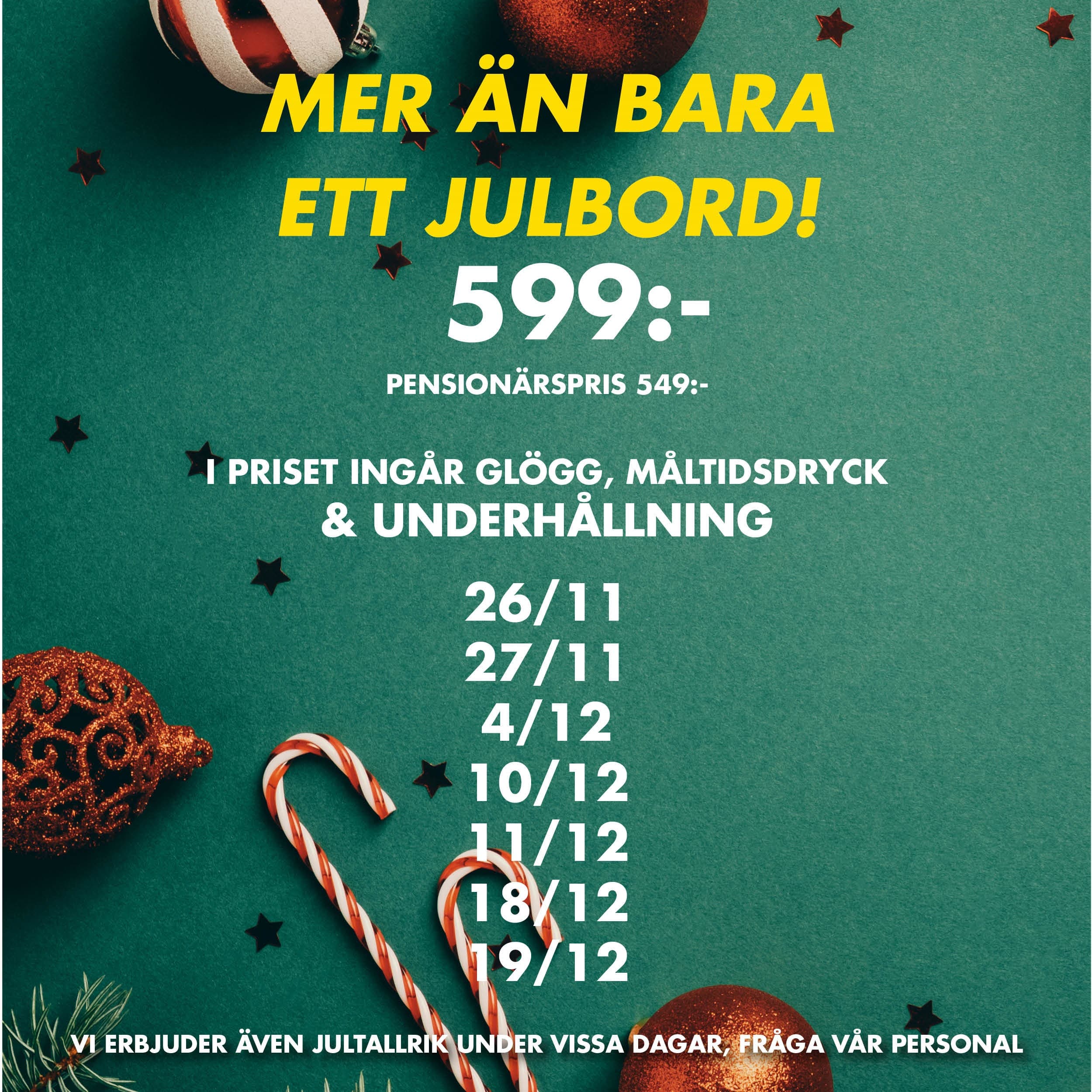 Now it’s time to gather your team, colleagues or friends and book this year’s highlight: our classic Christmas buffet. We serve up a generous buffet with all the Christmas favorites and include mulled wine and soft drinks. Price: 599 SEK per person, 549 SEK for seniors.