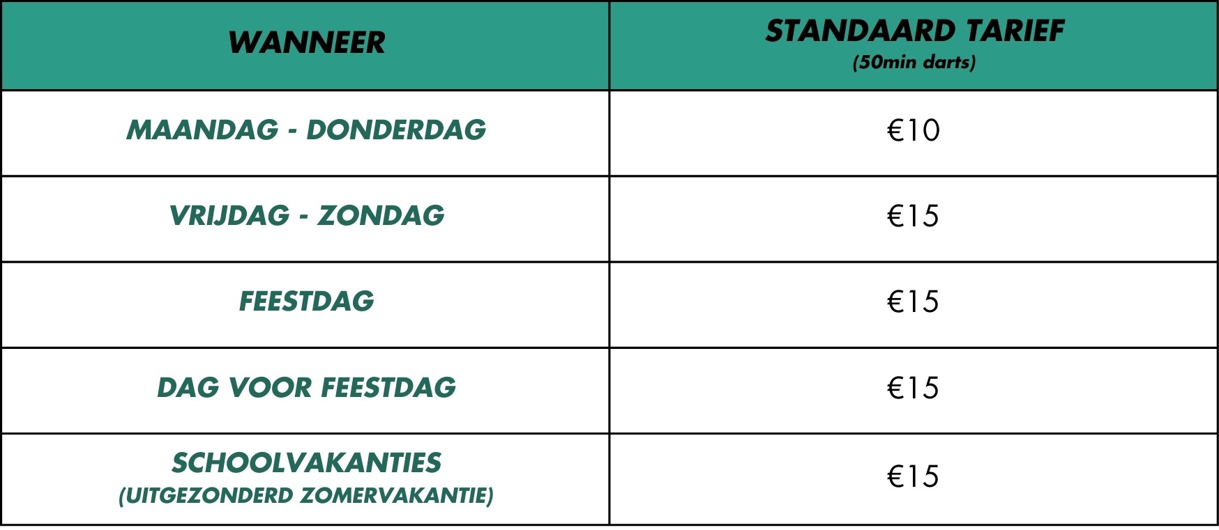 - TIJD: Je huurt de dartbanen per 50 minuten.