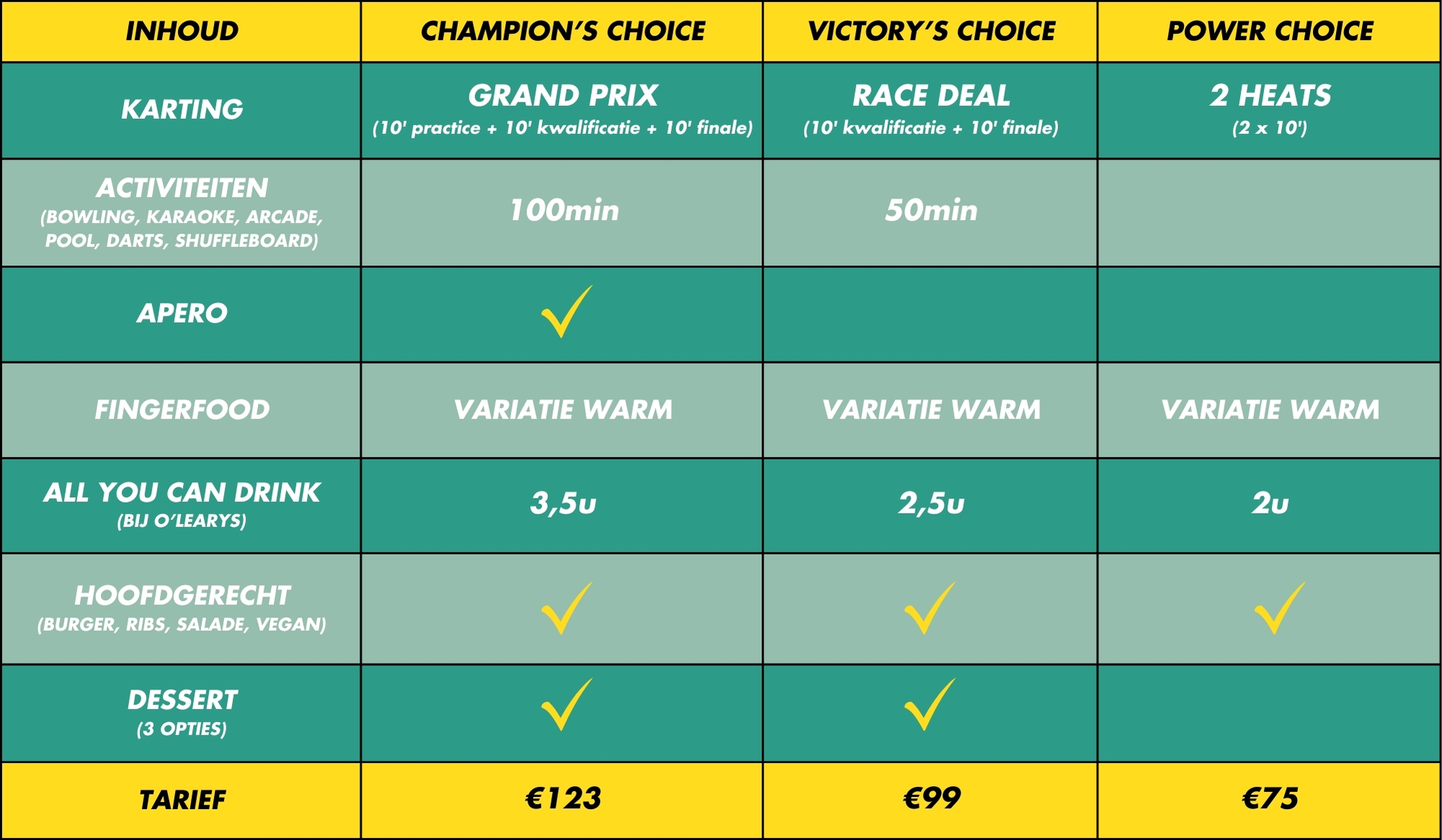 Op zoek naar een teambuilding in Gent die actie en fun combineert? Kies voor een onvergetelijke ervaring met onze teambuildingformules bij O'Learys Gent, inclusief spannende karting bij onze onderbuur E-Kart Gent. Begin met adrenaline op de kartbaan en sluit af met activiteiten zoals bowlen, karaoke, arcadegames, shuffleboard, en darts.