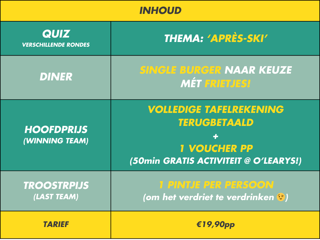 Het thema van de quiz is in de maand februari: 'APRÈS-SKI!'.