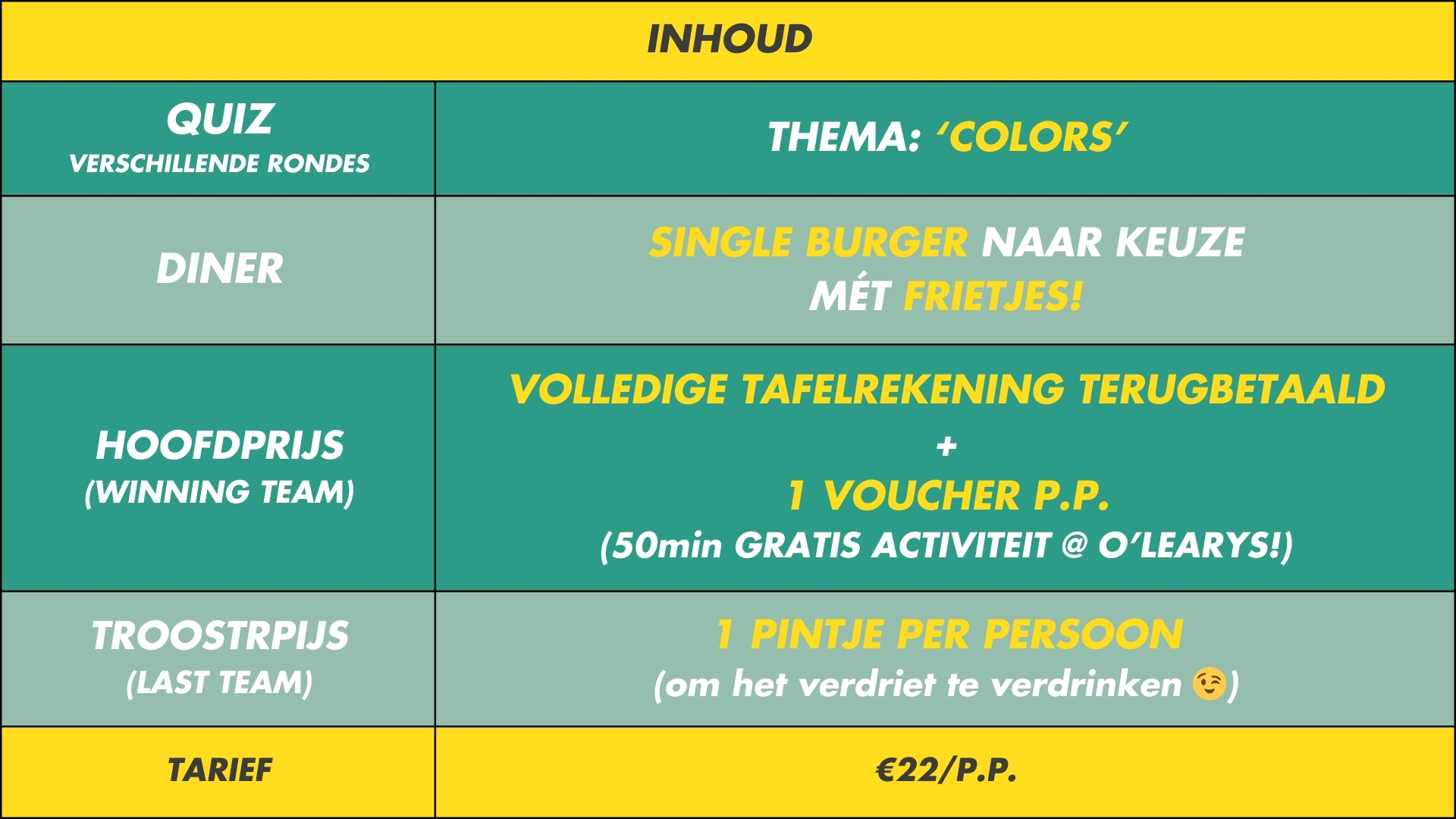Quiz thema Colors bij O’Learys Hasselt
