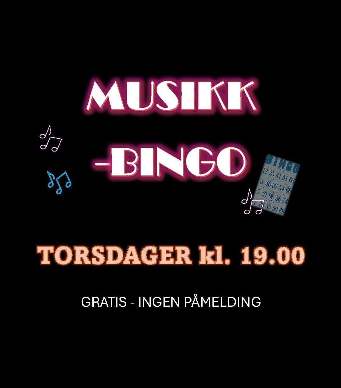 Torsdager kl. 19 inviterer vi til GRATIS musikkbingo -ferdig ca. kl. 21.