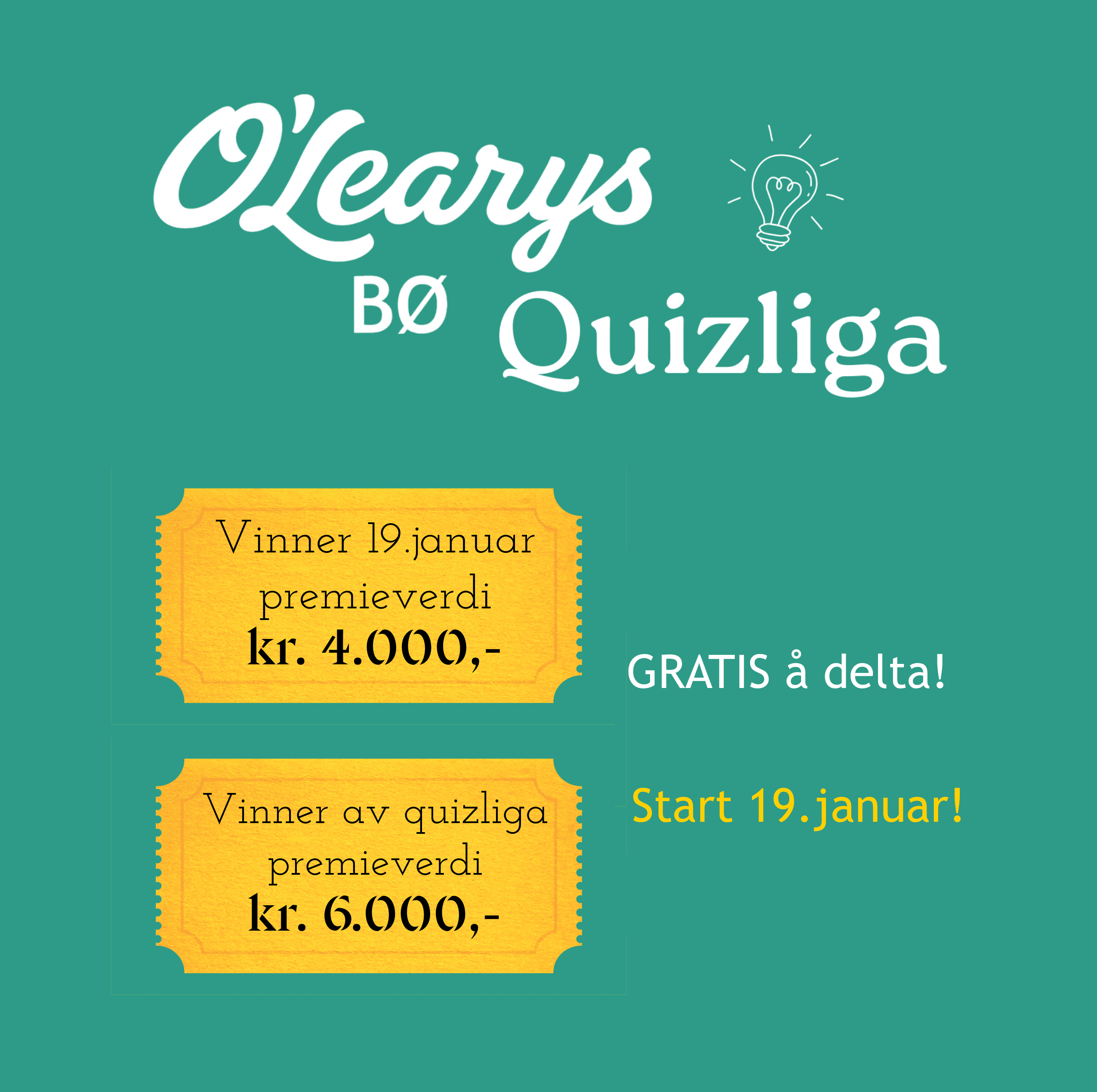 Første quizkveld blir premiene som følger: