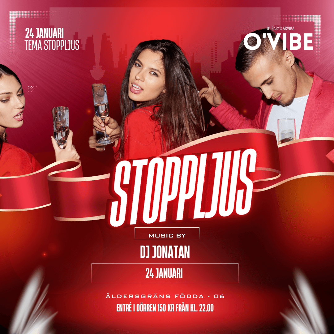 O’Vibe Nightclub på O’Learys bjuder in till Stoppljusfest - kvällen där färgen du bär säger allt! - Rött om du är upptagen, - Gult om du är i en situationship - Grönt om du är singel och redo att mingla. Du behöver inte gå all in - det räcker med en detalj i rätt färg för att visa var du står. En energifylld natt med heta beats, blinkande ljus, flirtig stämning och skratt som ekar över dansgolvet - perfekt för dig som vill känna nattens puls, möta nya ansikten och festa loss på riktigt! Entré i dörren 150 kr från kl. 22.00. Åldersgräns födda -06
