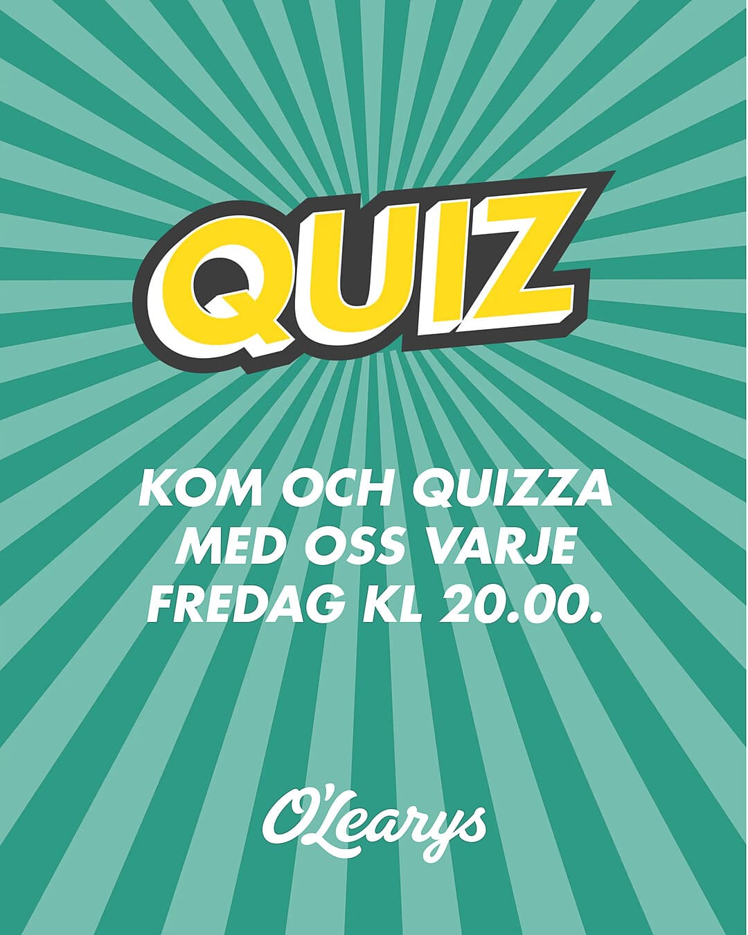 Fredagar samlas vi på O'Learys kl. 20.00 och tävlar i vår 'Music Video Quiz' där man kan vinna fina priser. Det blir frågor om musik och musikvideos kryddat med lite andra frågor.