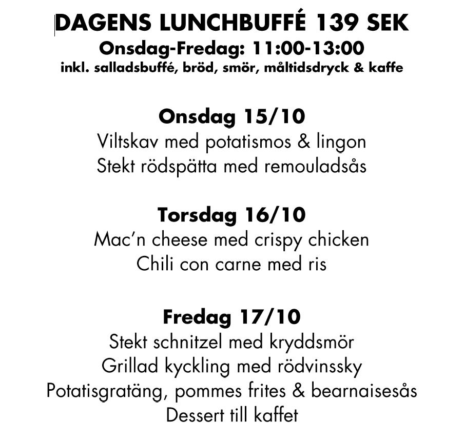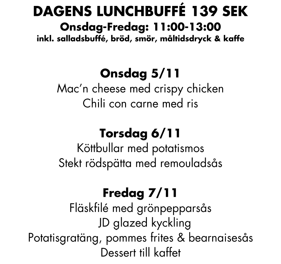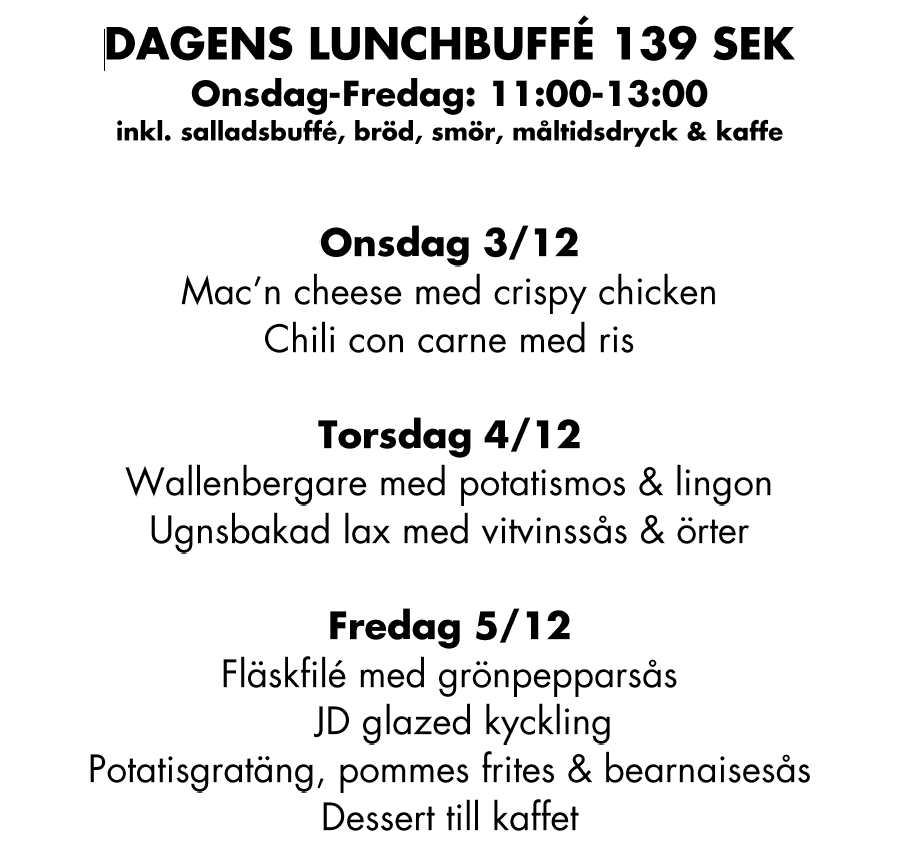 LUNCH Onsdag till fredag 11:00 - 13:00