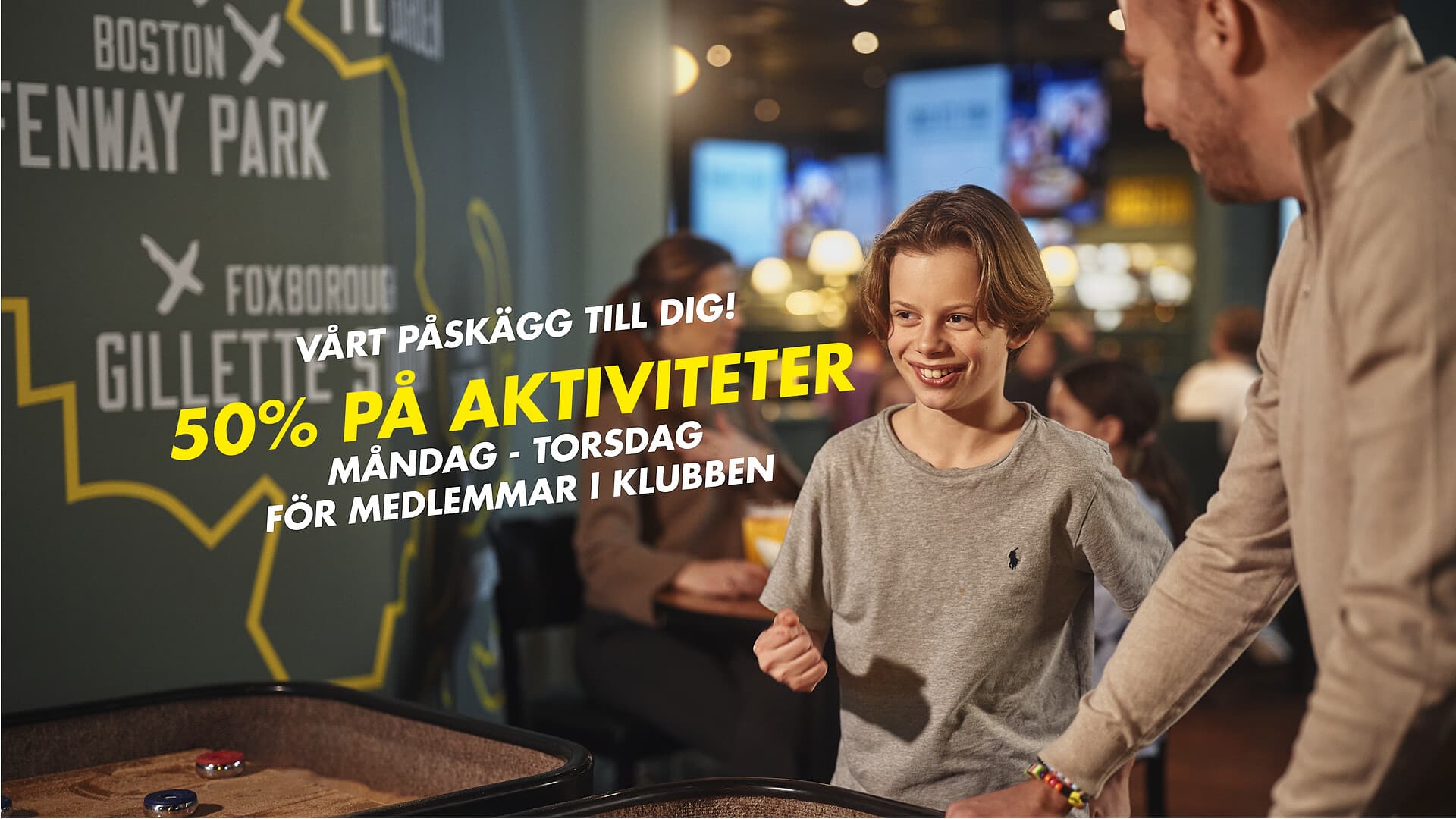 Under påsklovet (v.14) får du 50 % på aktiviteter måndag-torsdag (30/3-2/4) som medlem i O’Learys Club 💚