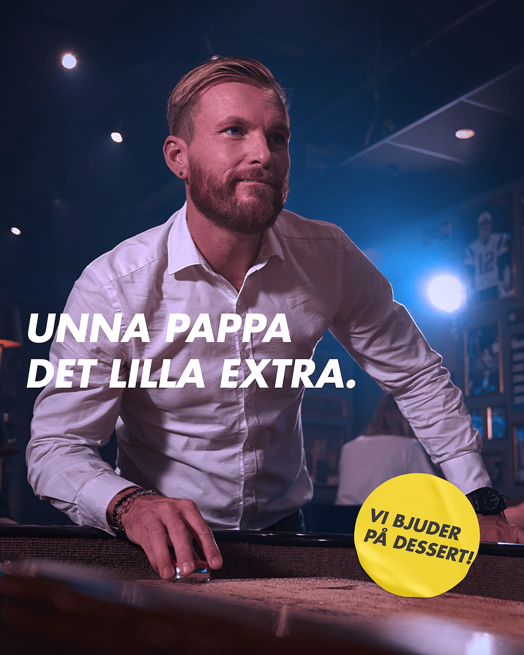 Som grädde på moset bjuder vi alla pappor på dessert vid köp av varmrätt!