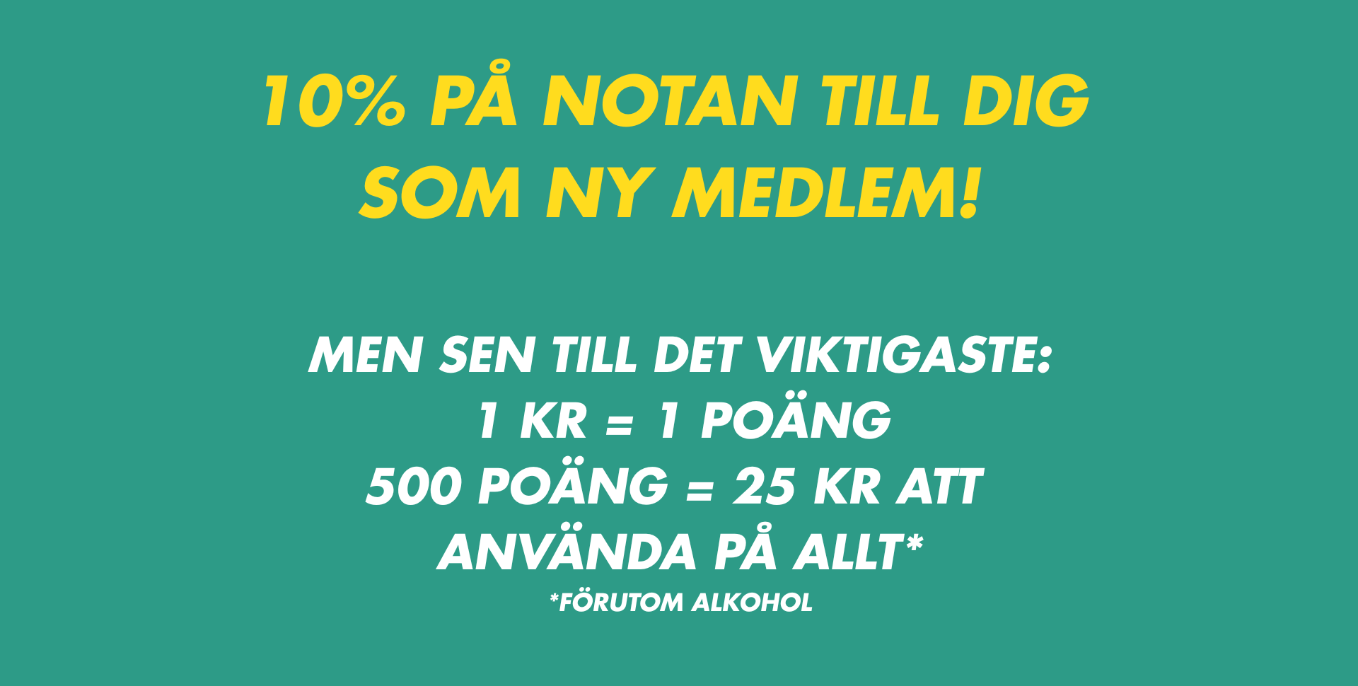 Vi gillar fair play och tydliga regler. 1 kr = 1 poäng, när du samlat 500 poäng får du en 25 kr voucher som du kan använda på vad du vill hos oss förutom alkohol.