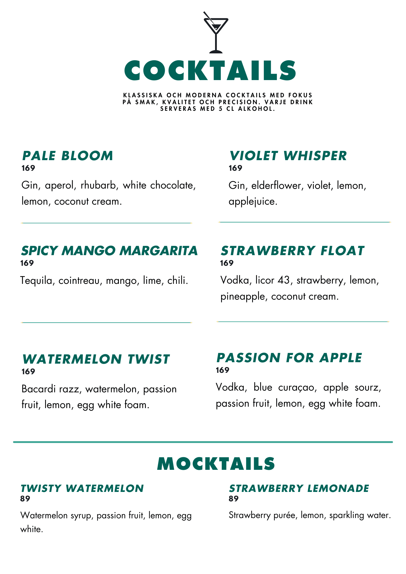 Välkommen till O’Learys Kistas cocktailbar – platsen där klassiska favoriter möter moderna smaker. Här blandar våra erfarna bartenders allt från tidlösa cocktails till kreativa signaturdrinkar, alltid med noggrant utvalda råvaror och en passion för detaljer. Oavsett om du vill starta kvällen med en elegant drink, fira med vänner eller koppla av efter jobbet erbjuder vår cocktailbar en avslappnad atmosfär, skön stämning och något i glaset för alla smaker. Självklart finns även alkoholfria alternativ av samma höga kvalitet.
