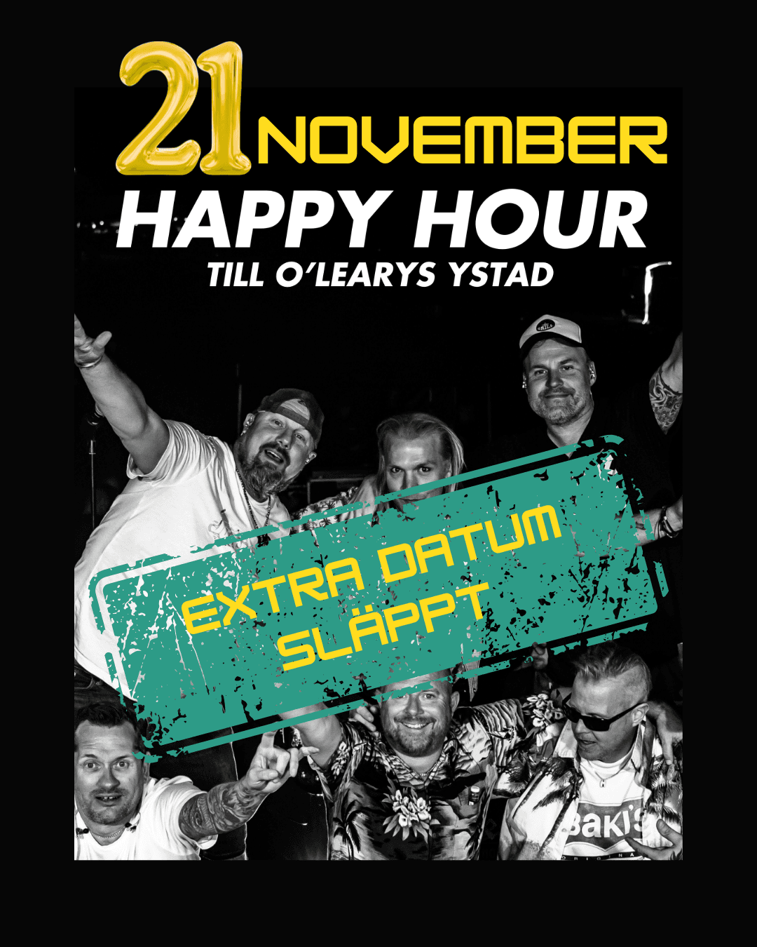 EXTRA SPELNING SLĂPPT! Fredag den 21 november kl. 22:00 intar Happy Hour scenen hos oss pĂ„ O'Learys i Ystad! đ€© RĂ€kna med en kvĂ€ll fylld av energi, skön stĂ€mning och grym livemusik du inte vill missa! đ»đ€
